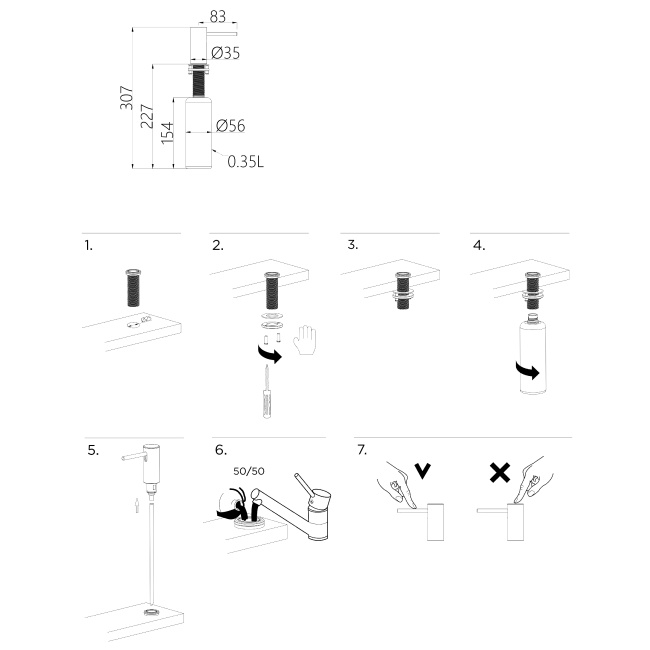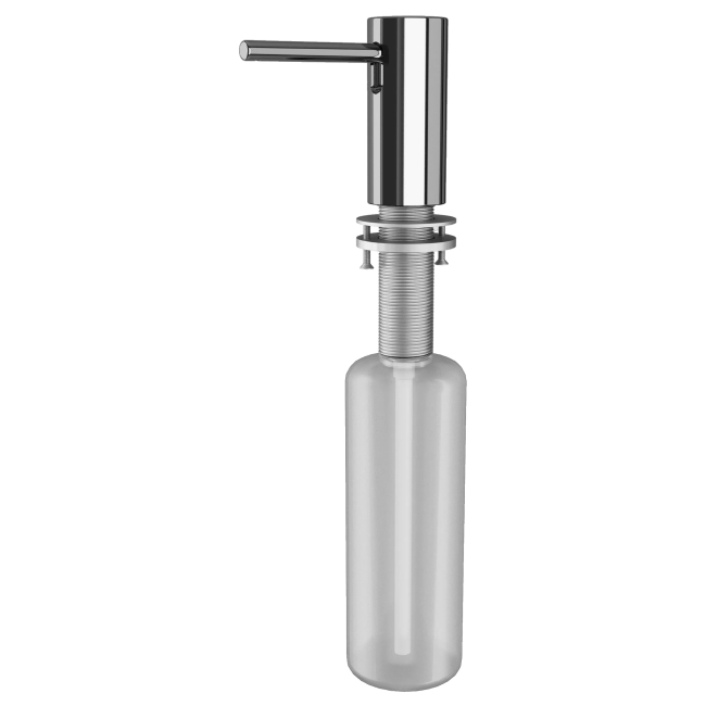 Стильный встраиваемый дозатор STORK для жидкого моющего средства совместим с любыми столешницами (толщиной до 55 мм) и любыми мойками.