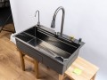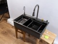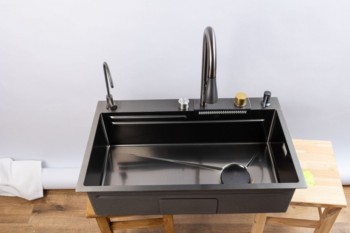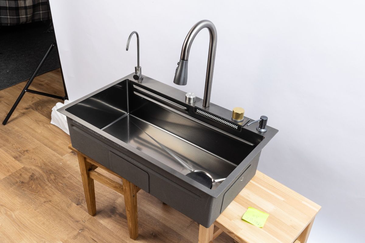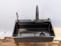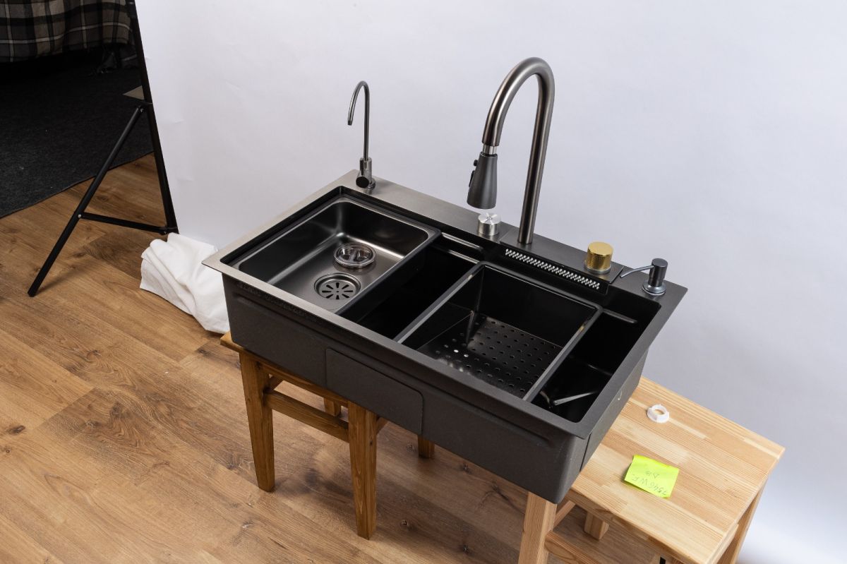 Комплектация: Смеситель с выдвижным изливом, вентиль для подачи питьевой воды, коландер металлический (миска для сушки), колландер с перфорацией (съемный наклонный дуршлаг), ринзер для стаканов (омыватель стаканов), доска разделочная (дерево).