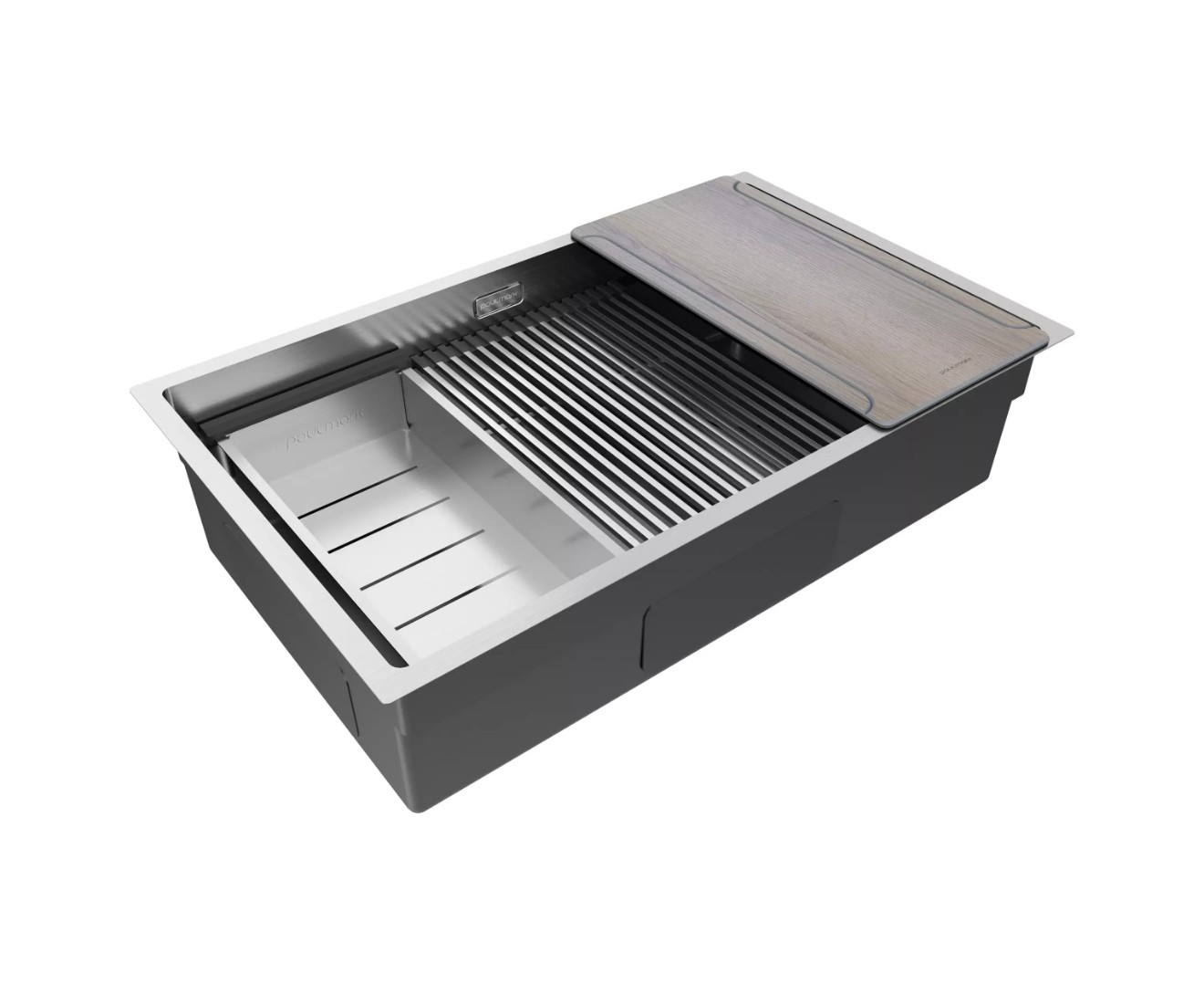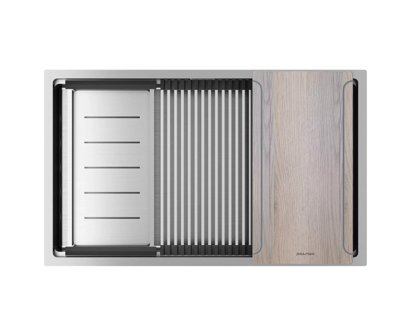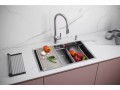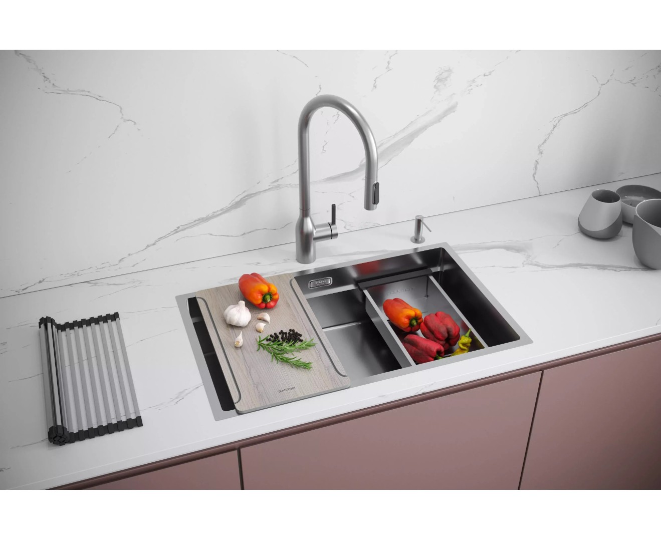 Трехуровневая мойка из нержавеющей стали NEXT-MULTI SINK 74 UNI разработана специально для использования вместе с аксессуарами, такими как ролл-мат, коландер, разделочная доска. Встроенный уступ в чаше мойки создает дополнительный уровень для установки аксессуаров. Таким образом, мойка становится единой точкой для подготовки продуктов перед их приготовлением. Мыть продукты, обсушивать их, нарезать и сразу перекладывать в кастрюлю или чашу пароварки можно находясь около мойки. Трехуровневая мойка NEXT-MULTI SINK 74 UNI помогает правильно организовать рабочее пространство.