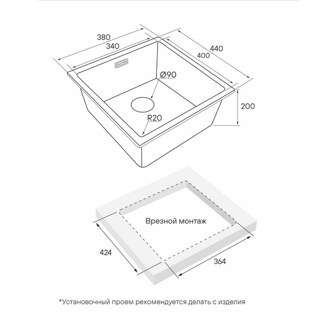 врезная под столешницу, врезная на столешницу, врезная вровень со столешницей