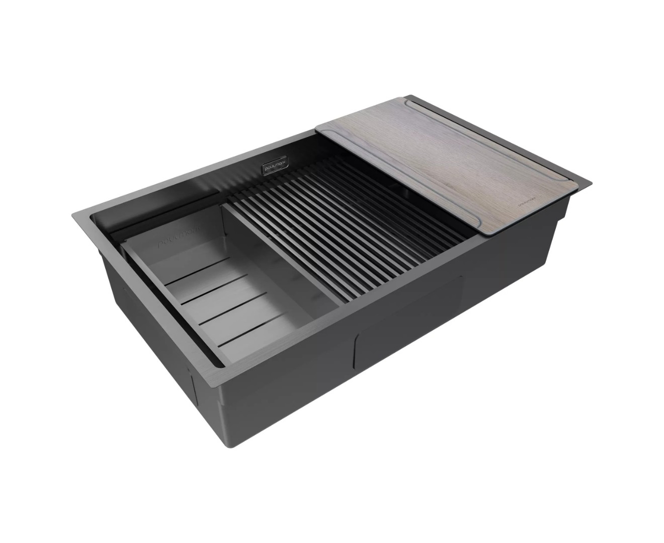 Мойка NEXT-MULTI SINK 74 UNI в цвете вороненая сталь (GM) имеет прочное PVD покрытие, которое нанесено на нержавеющую сталь. Оно особенно устойчиво к появлению царапин и истиранию, не содержит микротрещин и является экологически чистым.