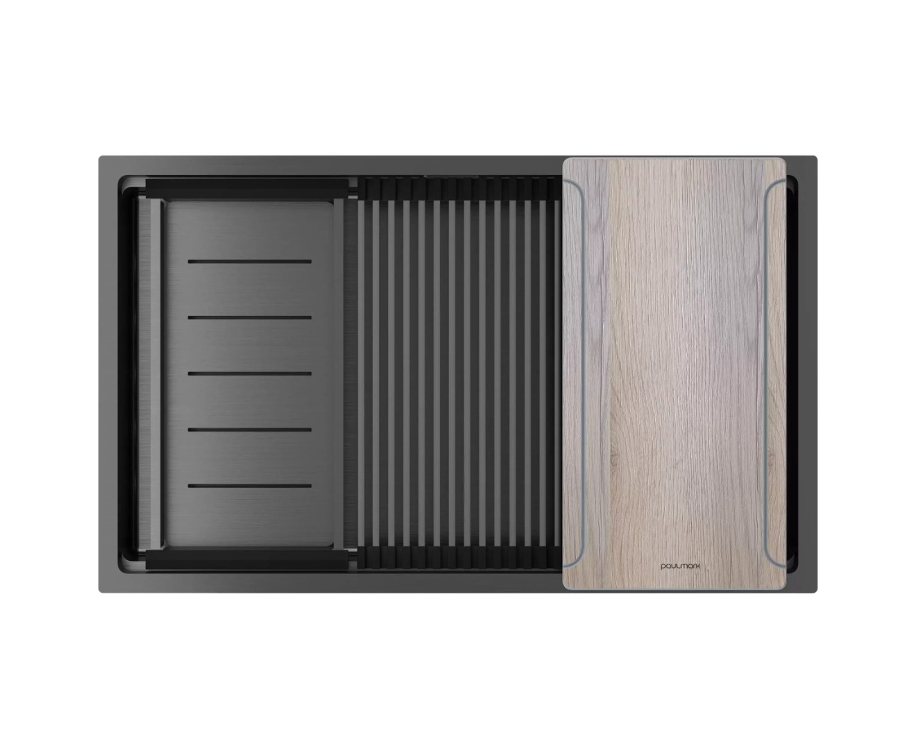 Кухонная мойка PAULMARK NEXT-MULTI SINK 74 UNI PM787445-GM (вороненая сталь)