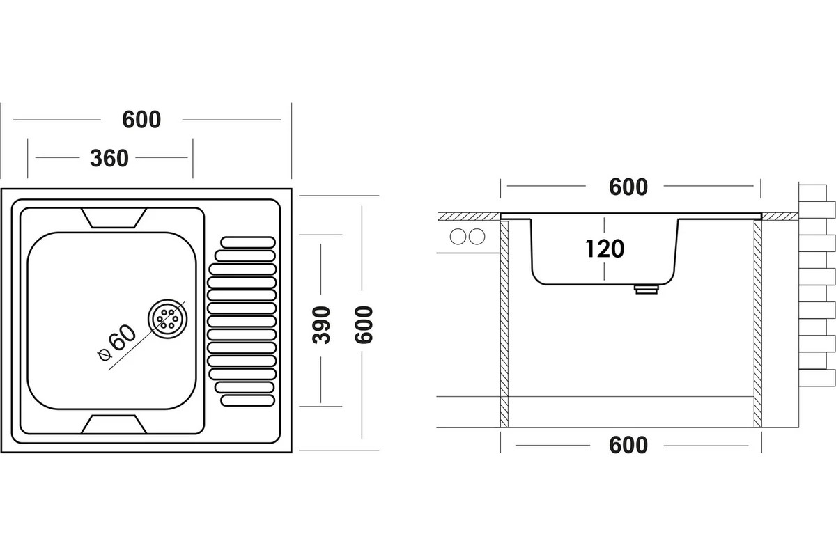 Мойка ECO600.600 R российского производства, изготовлена из нержавеющей стали AISI 430 толщиной 0.4 мм. Состоит из одной чаши и небольшого крыла. Чаша расположена справа относительно крыла. Производится с видом поверхности матовый металл.