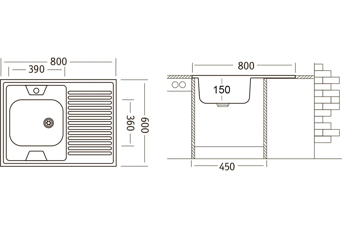 Компактная кухонная мойка серии эконом STD800.600 ---5C 0R- российского производства, изготовлена из нержавеющей стали AISI 304 толщиной 0,5 мм, состоит из одной чаши и производится с одним видом поверхности Матовый металл. Изделие отличается высоким качеством и ценовой доступностью.