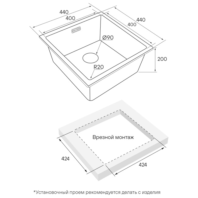 Мойки VISTA UNI могут быть установлены как врезным способом поверх столешницы, так и под столешницу (подстольный монтаж).