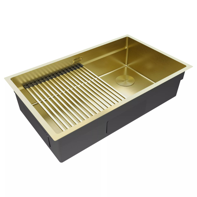 Мойка NEXT-PRO 74 UNI в цвете светлое золото (LG) имеет прочное PVD-покрытие, которое нанесено на нержавеющую сталь. Оно особенно устойчиво к истиранию, не содержит микротрещин и является экологически чистым.