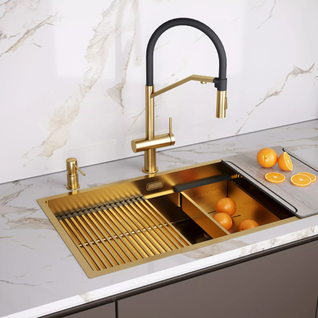 Помимо подачи стандартной струи, смеситель оснащен функцией подачи воды в режиме «душ» для идеального промывания посуды и продуктов