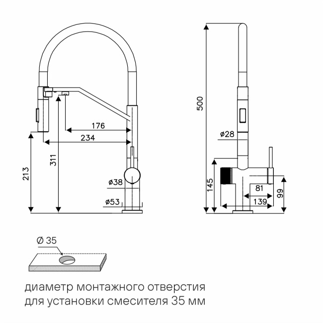 • Гибкий излив из силикона