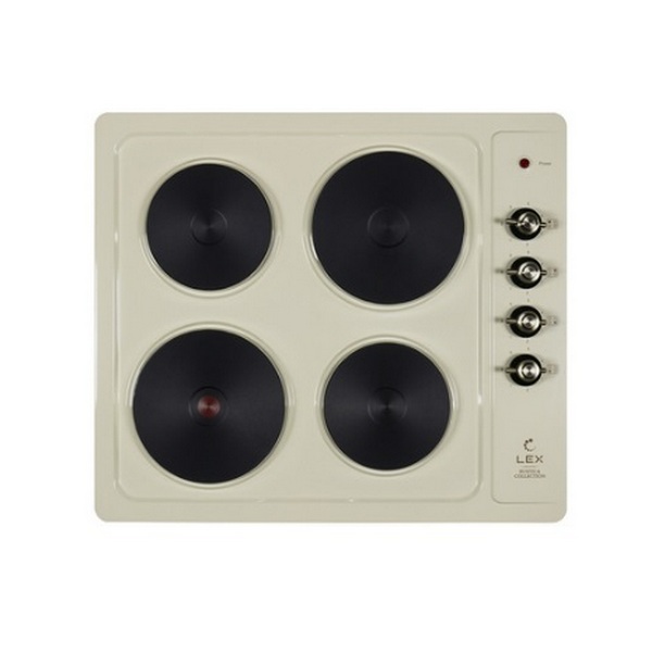 Электрическая независимая варочная поверхность, эмалированная сталь, 4 зоны нагрева, механическое управление, защита от перегрева, цвет - слоновая кость (светлая)