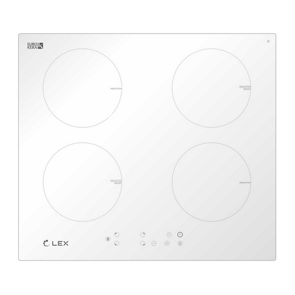 Индукционная независимая варочная поверхность, стеклокерамическая, 4 индукционные зоны, 2 зоны ускоренного нагрева, сенсорное управление, 9 уровней мощности, индикаторы остаточного тепла, защита от детей, цвет - белый