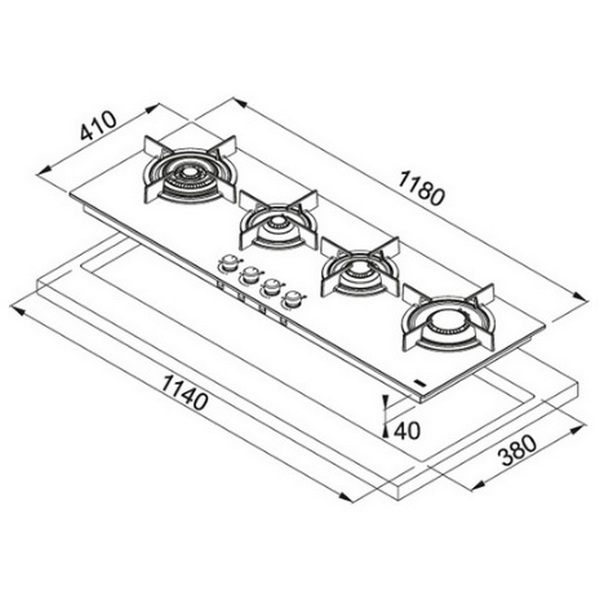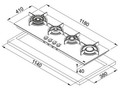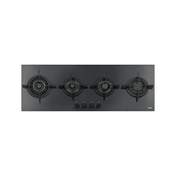 Газовая варочная поверхность, черное стекло, чугунные решетки, 4 газовые конфорки, электроподжиг, газ-контроль