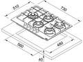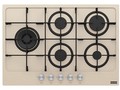 Газовая варочная поверхность, нержавеющая сталь, бежевая, чугунные решетки, 5 газовых конфорок, электроподжиг, газ-контроль