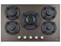 Газовая варочная поверхность, закаленное стекло, чугунные решетки, 5 газовых конфорок, электроподжиг, газ-контроль, цвет серая медь, рельефные поворотные ручки переключателей