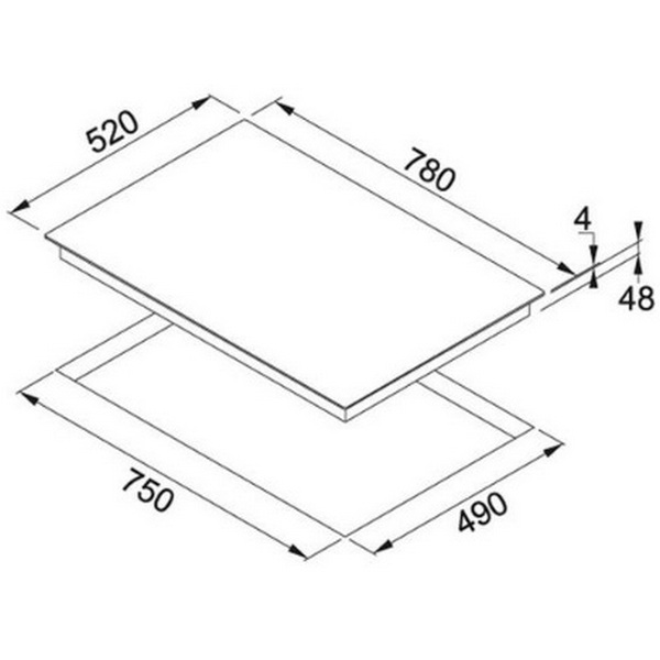 Ширина монтажного выреза 490 mm Ширина варочной поверхности (см) 78