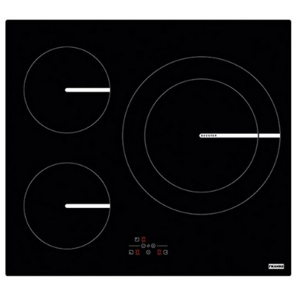 Индукционная. Черное стекло, сенсор, распознавание размеров посуды.