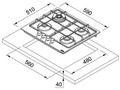 Газовая варочная поверхность, нержавеющая сталь, чугунные решетки, 4 газовые конфорки, электроподжиг, газ-контроль, цвет нержавеющая сталь матовая
