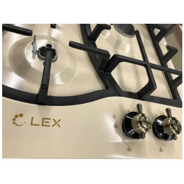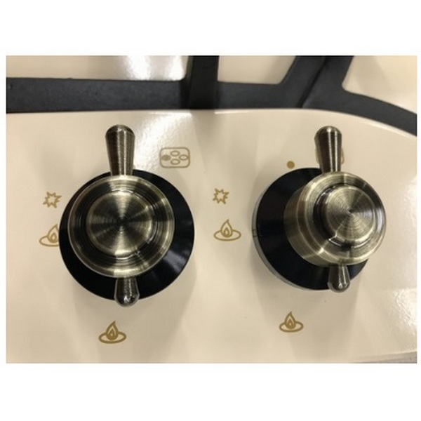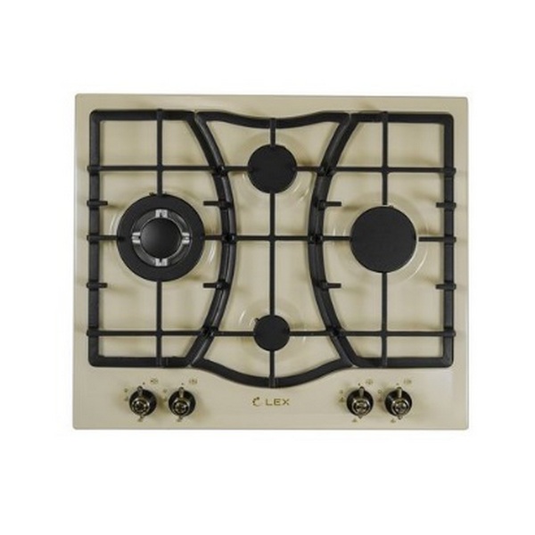 Газовая варочная поверхность, эмалированная сталь, чугунные решетки, 4 газовые конфорки, электроподжиг, газ-контроль, цвет - слоновая кость