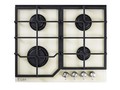 Газовая варочная поверхность, закаленное стекло, чугунные решетки, 4 газовые конфорки, электроподжиг, без газ-контроля, цвет - слоновая кость (светлая)