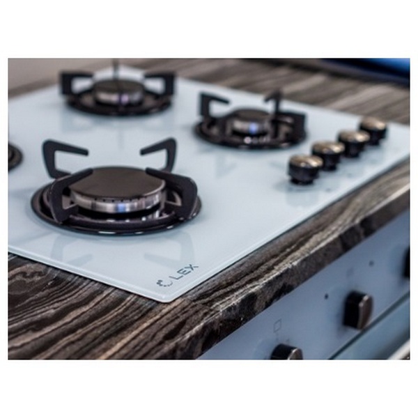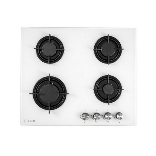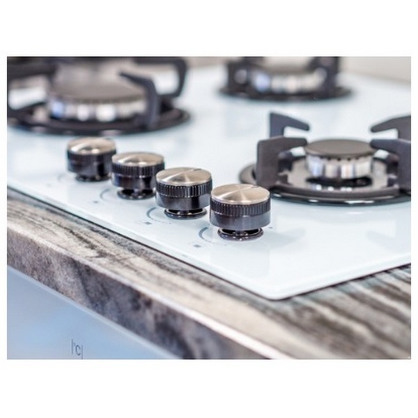 Газовая варочная поверхность, закаленное стекло, эмалированные решетки, 4 газовые конфорки, электроподжиг, без газ-контроля, цвет - белый