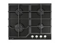 Газовая варочная поверхность, закаленное стекло, чугунные решетки, 4 газовые конфорки, электроподжиг, без газ контроля, цвет - черный