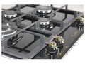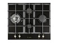 Газовая варочная поверхность, закаленное стекло, чугунные решетки, 4 газовые конфорки, электроподжиг, газ-контроль, цвет - черный
