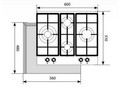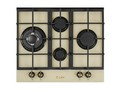 Газовая варочная поверхность, закаленное стекло, чугунные решетки, 4 газовые конфорки, электроподжиг, газ-контроль, цвет - слоновая кость