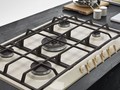 Цвет кремовый, ручки белые с золотом, чугунные решетки, автоматический электроподжиг