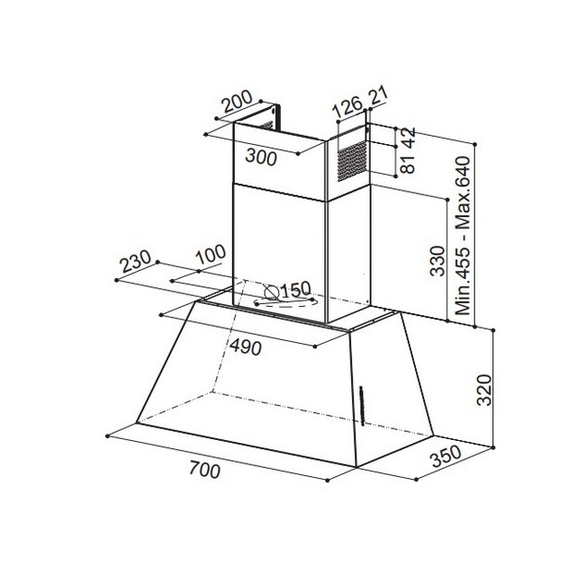 Высота: 67.5 см Ширина: 70 см Глубина: 35.2 см Максимальная высота: 96 см Габариты: 67.5-96 х 70 х 35.2 см Материал: окрашенный металл Режимы работы: отвод / рециркуляция Элементы кнопочные Интенсивный режим Аспирация по периметру Дистанционное управление Индикатор загрязнения фильтра Режим Hour (24 часа) Таймер Частота: 50/60 Гц Количество двигателей: 1 Мотор: Evo Комплектация: Пульт управления, Декоративный дымоход