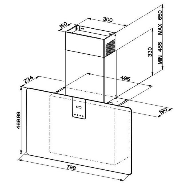 Высота: 92.5 см Ширина: 79.8 см Глубина: 23.4 см Габариты: 92.5-112 х 79.8 х 23.4 см Максимальная высота: 112 см Материал: пластик/стекло Режимы работы: отвод / рециркуляция Элементы сенсорные Дисплей Интенсивный режим Частота: 50/60 Гц Количество двигателей: 1 Мотор: Nautilus