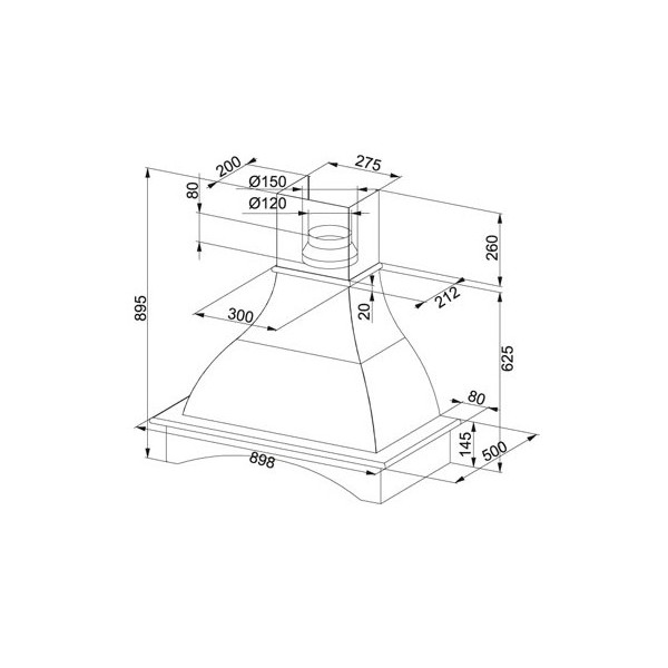 Пристенная вытяжка. Декоративная отделка неокрашенное дерево В КОМПЛЕКТЕ (арт. 112.0018.038). Управление электромеханическое, комфортное освещение. Небольшой дефект окраски.