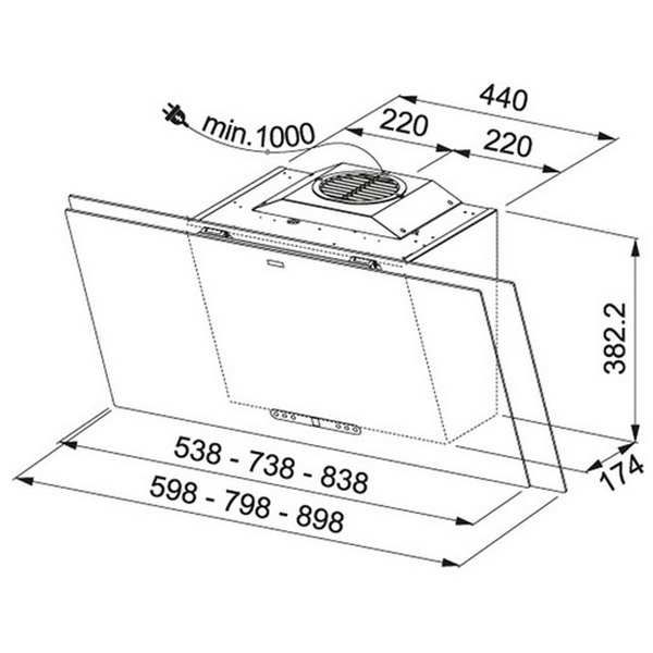 Отделка - стекло, цвет белый. Комфортное LED освещение, изменение интенсивности освещения. Датчик насыщенности фильтров. Угольный фильтр в комплекте. Декоративные короба - дополнительная опция