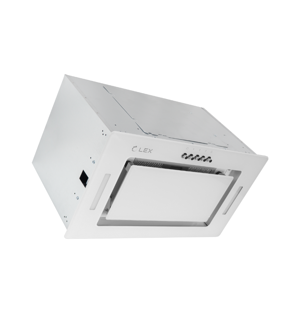 LEX GS BLOC G 600 WHITE – один из лучших вариантов если необходимо спрятать вытяжку, сохранив весь ее функционал. Модель белого цвета имеет 3 скорости, кнопочное управление, красивую подсветку LED лампами. Модель шириной 600 мм имеет белый цвет, оснащена периметральной аспирацией (SPA), алюминиевым фильтром, который можно мыть в посудомоечной машине. LEX GS BLOC G 600 WHITE может работать как в режиме отвода воздуха, так и в режиме рециркуляции.