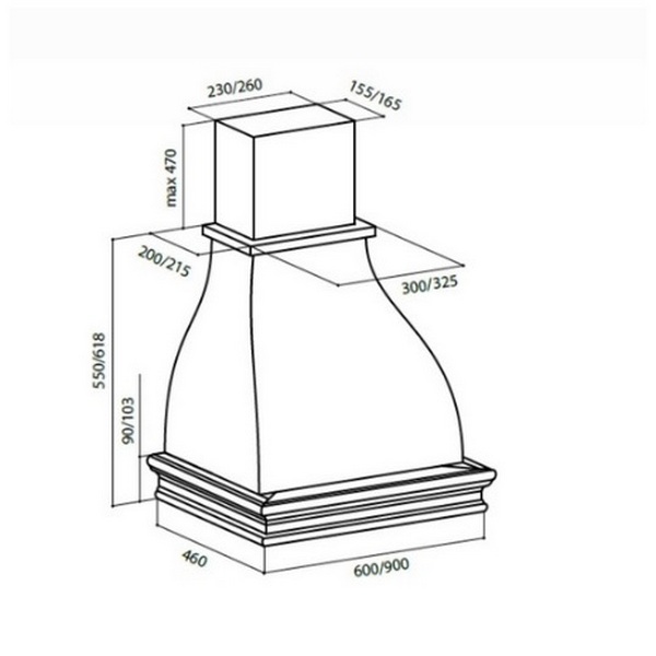 Окрашенная сталь. Декоративный короб неокрашенное дерево. Комфортное освещение. Угольный фильтр - дополнительная опция