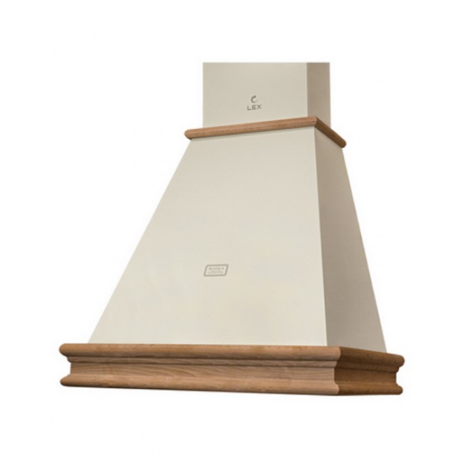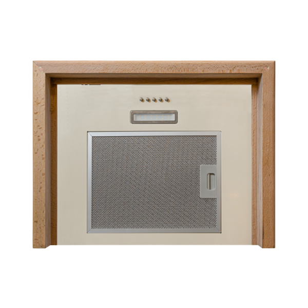 Пристенная вытяжка. Окрашенная сталь. Декоративный короб неокрашенное дерево. Управление кнопочное. Комфортное освещение. Угольный фильтр - дополнительная опция. Ретро стиль
