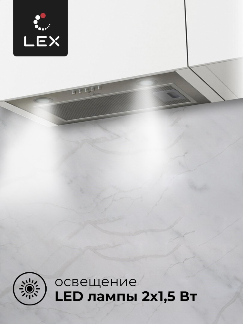 LEX GS BLOC P 600 INOX – полновстраиваемая вытяжка практически незаметна в интерьере, благодаря чему отлично подходит, как для интерьера в классическом стиле, так и для современного минималистичного пространства. Устройство цвета нержавеющей стали имеет интуитивно понятное кнопочное управление. В передней части вытяжки расположена экономичная LED подсветка. Подключение LEX GS BLOC P 600 INOX возможно, как на отвод воздуха в вентиляцию, так и на режим рециркуляции воздуха. Мотор повышенной мощности обеспечивает уникальные для своего класса показатели производительности.