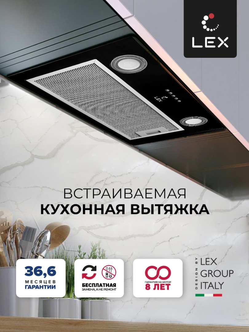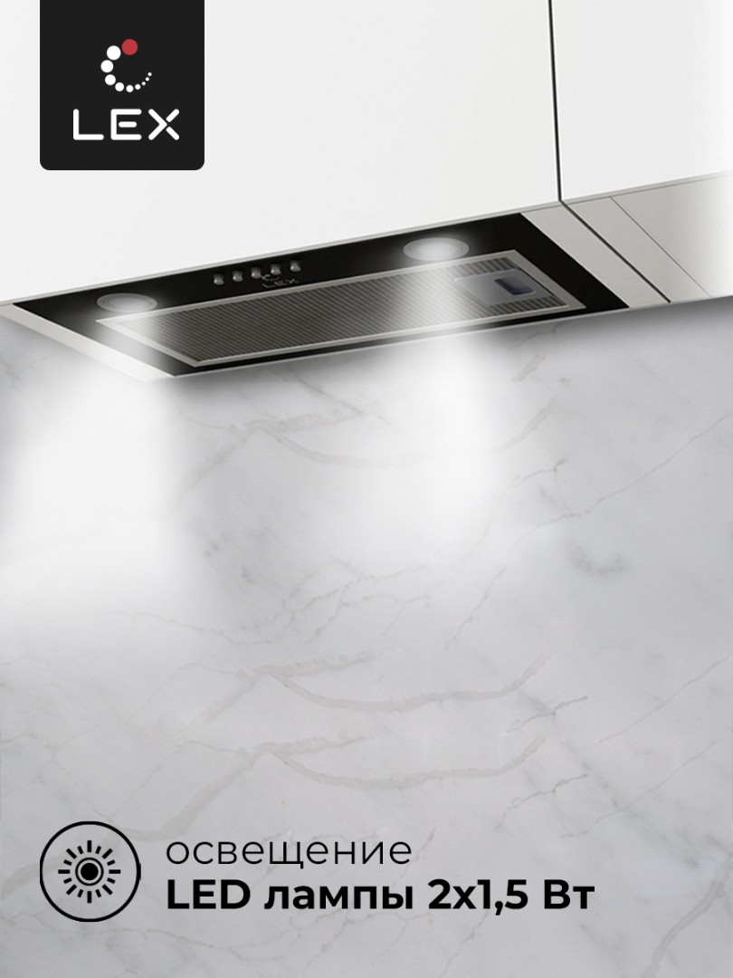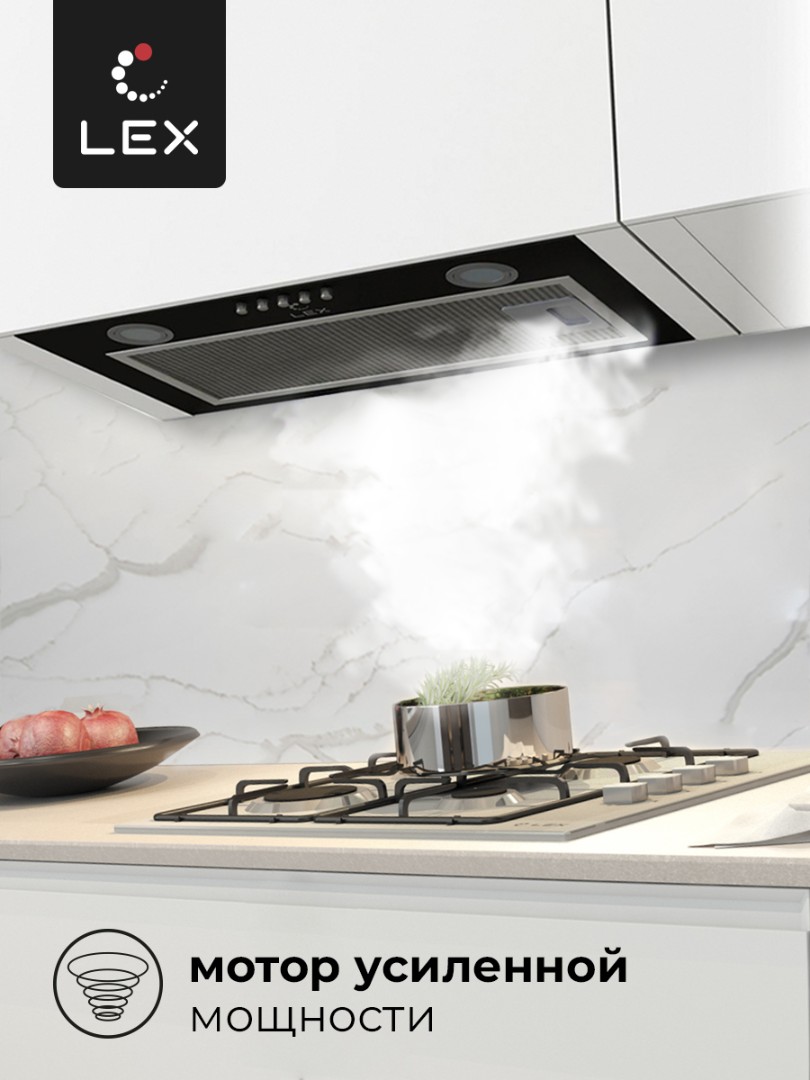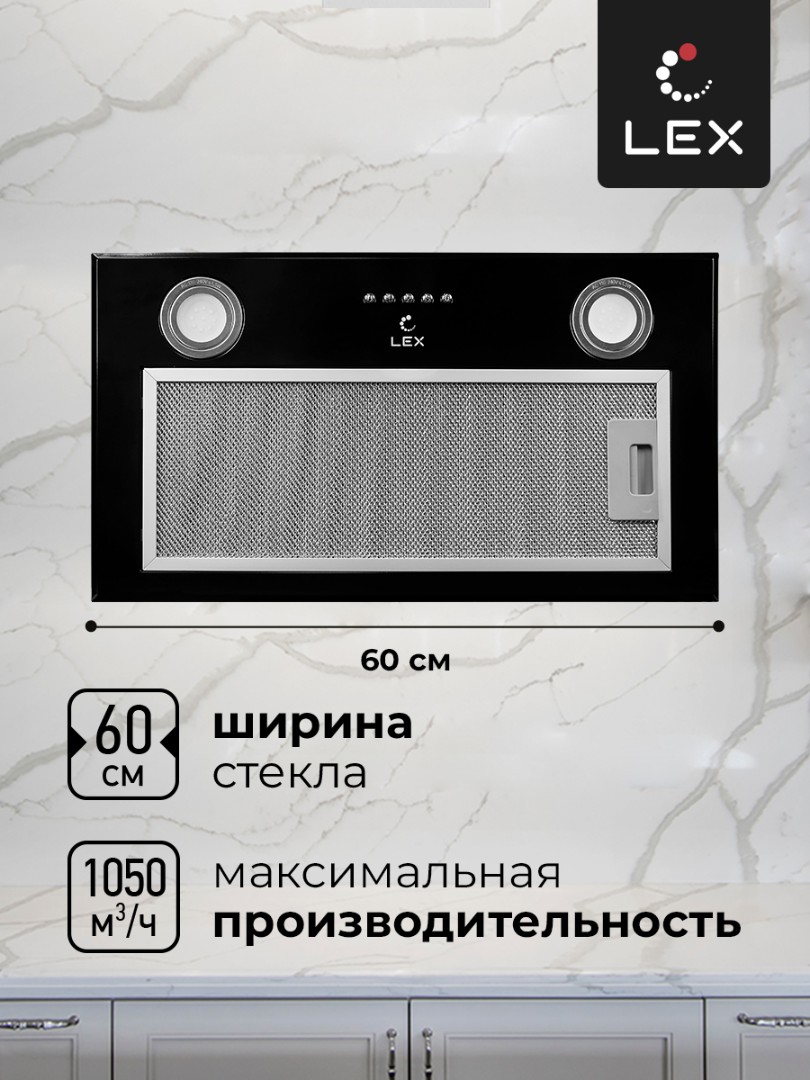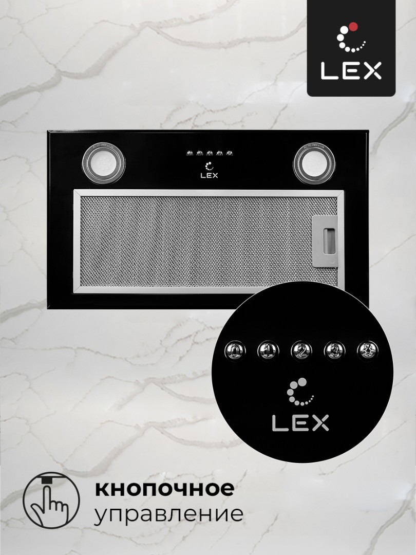 LEX GS BLOC P 600 BLACK – полновстраиваемая вытяжка практически незаметна в интерьере, благодаря чему отлично подходит, как для интерьера в классическом стиле, так и для современного минималистичного пространства. Устройство чёрного цвета имеет интуитивно понятное кнопочное управление. В передней части вытяжки расположена экономичная LED подсветка. Подключение LEX GS BLOC P 600 BLACK возможно, как на отвод воздуха в вентиляцию, так и на режим рециркуляции воздуха. Мотор повышенной мощности обеспечивает уникальные для своего класса показатели производительности.