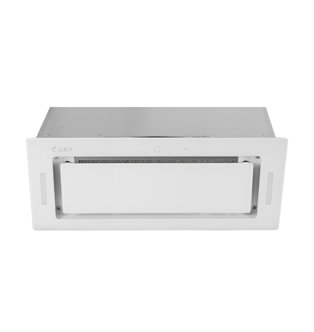 LEX GS BLOC GS 900 WHITE – один из лучших вариантов если необходимо спрятать вытяжку, сохранив весь ее функционал. Модель белого цвета имеет 3 скорости, сенсорное управление FANTOM, красивую подсветку LED лампами. Модель шириной 720 мм имеет белый цвет, оснащена периметральной аспирацией (SPA), алюминиевым фильтром, который можно мыть в посудомоечной машине. LEX GS BLOC GS 900 WHITE может работать как в режиме отвода воздуха, так и в режиме рециркуляции.
