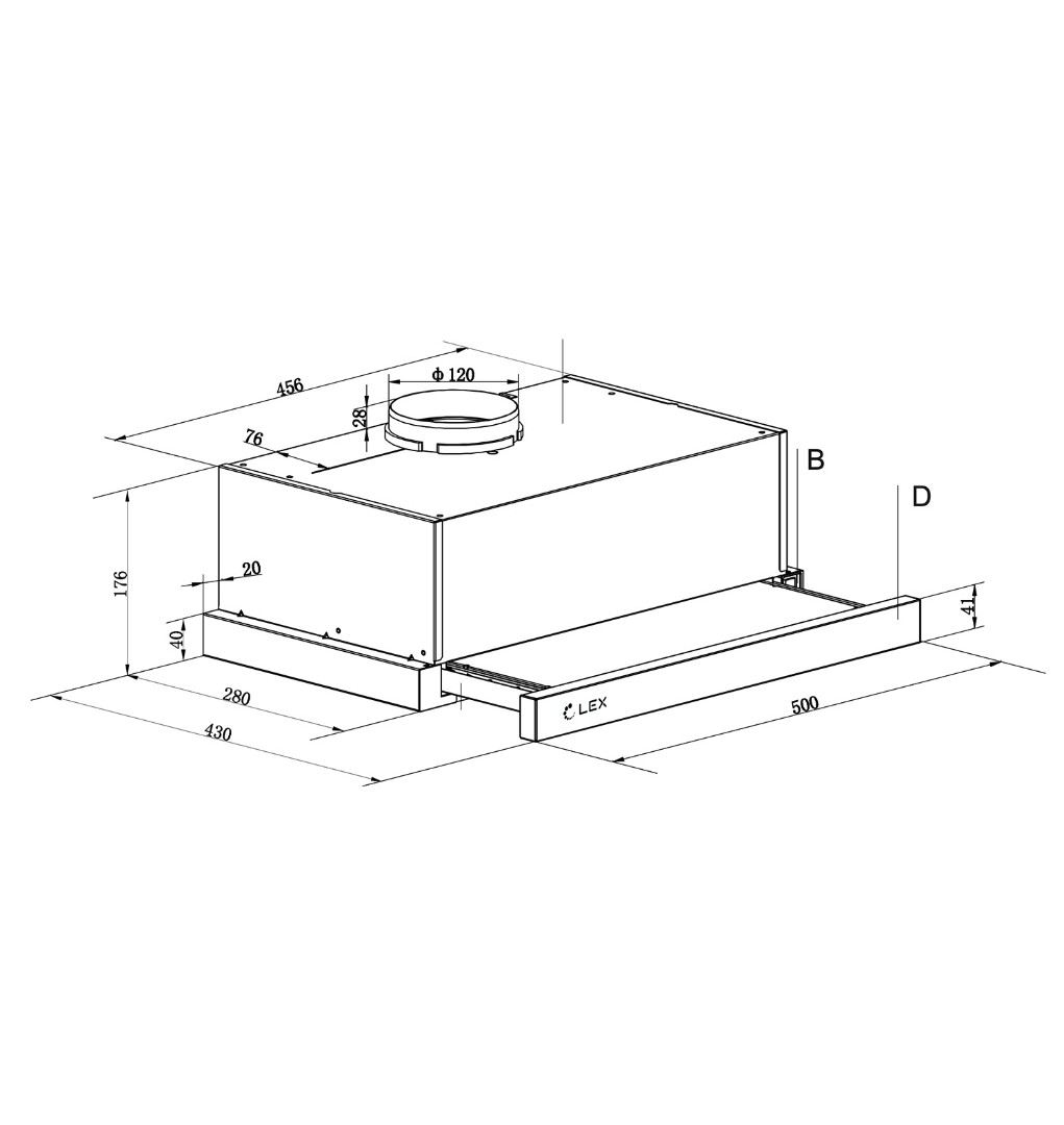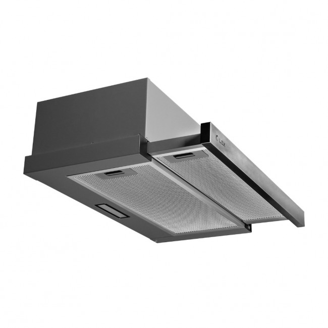 Компактная и тихая вытяжка LEX HIDE 500 — прекрасное решение для небольшой кухни. У модели высокая мощность, простое управление, комфортная для глаз подсветка. С помощью выдвижной каретки можно быстро увеличить площадь поглощения запахов и пара. Вытяжка встраивается в шкаф шириной 50 см, на виду остается только узкая панель в черном, стальном или белом цвете, поэтому эта модель идеально впишется в любой интерьер. Устройство можно подключить к вентиляции или установить на мотор угольные фильтры для работы вытяжки в режиме рециркуляции.